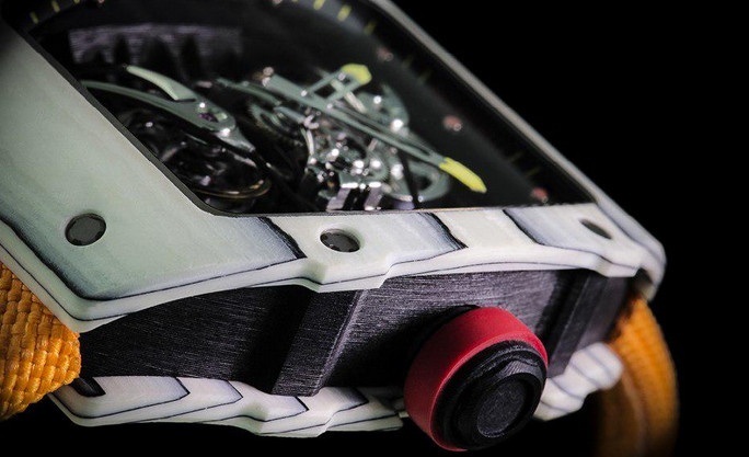 | Chiếc đồng hồ được xem như một kiệt tác nghệ thuật nhờ chất liệu hiếm có và công nghệ chế tạo tinh xảo. Phiên bản RM 27-02 Tourbillon chỉ nặng tổng cộng 20 gram nhưng có thể chịu được trọng lực lớn. |