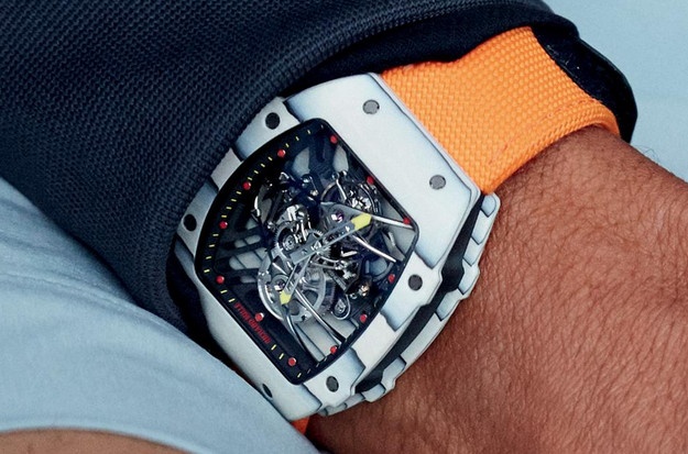 | Theo Business Insider, "cỗ máy thời gian" của Rafa có tên gọi RM 27-02 Tourbillon, được sản xuất bởi hãng đồng hồ danh tiếng Thụy Sỹ, Richard Mille. |