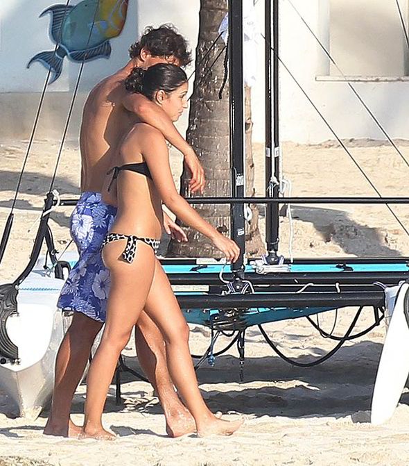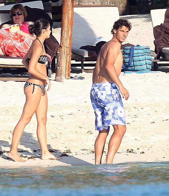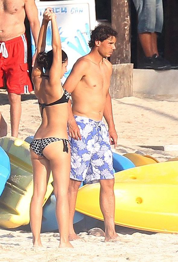 Ngôi sao quần vợt khoác vai bạn gái thong dong dạo biển. Là người không thích thể hiện tình cảm chốn đông người, rất hiếm khi người hâm mộ bắt gặp "ông vua sân đất nện" tình tứ với bạn gái. Chỉ khi có hai người với nhau, Nadal mới thoải mái tình tứ với Maria. |