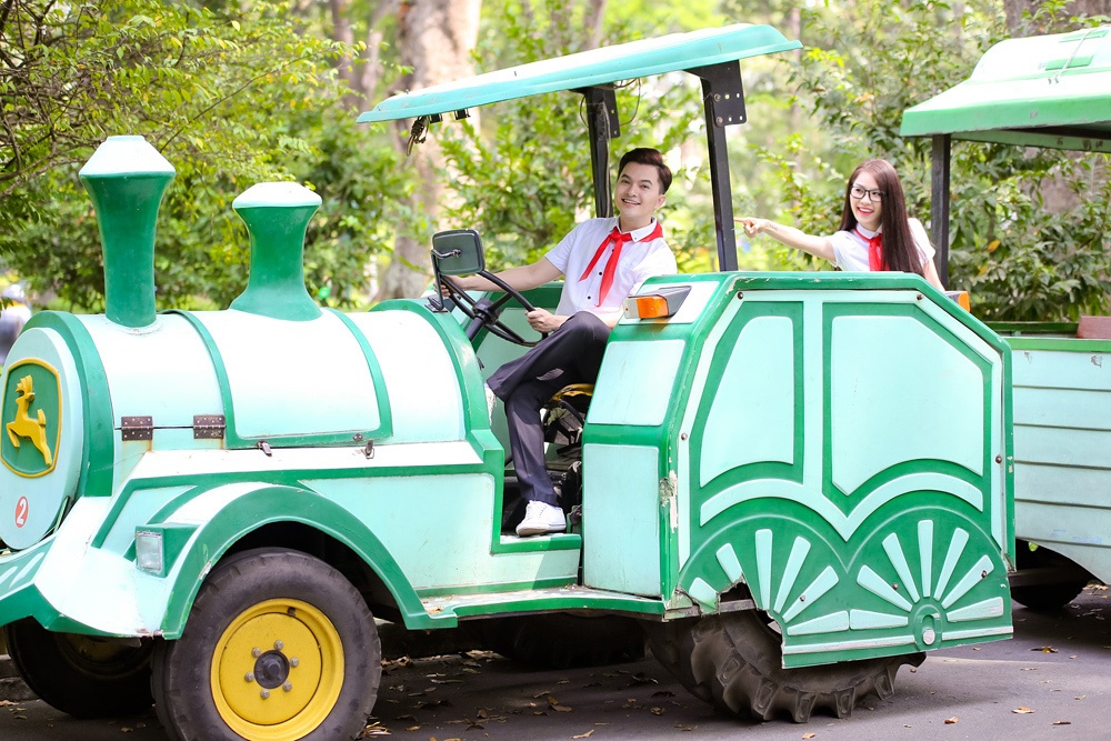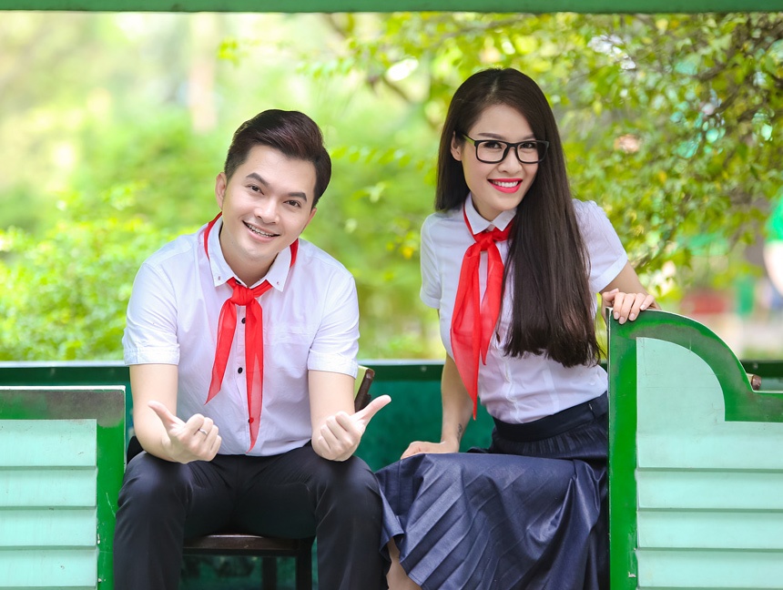 | Nhân dịp kỷ niệm ngày Nhà giáo Việt Nam 20/11, Nam Cường và Quế Vân quyết định diện áo đồng phục, vể trường cũ ôn lại kỷ niệm thời cắp sách tới trường. Dù đã chuẩn bị bước sang tuổi 30 nhưng cả hai trông vẫn rất trẻ trung khi mặc trang phục học sinh. |