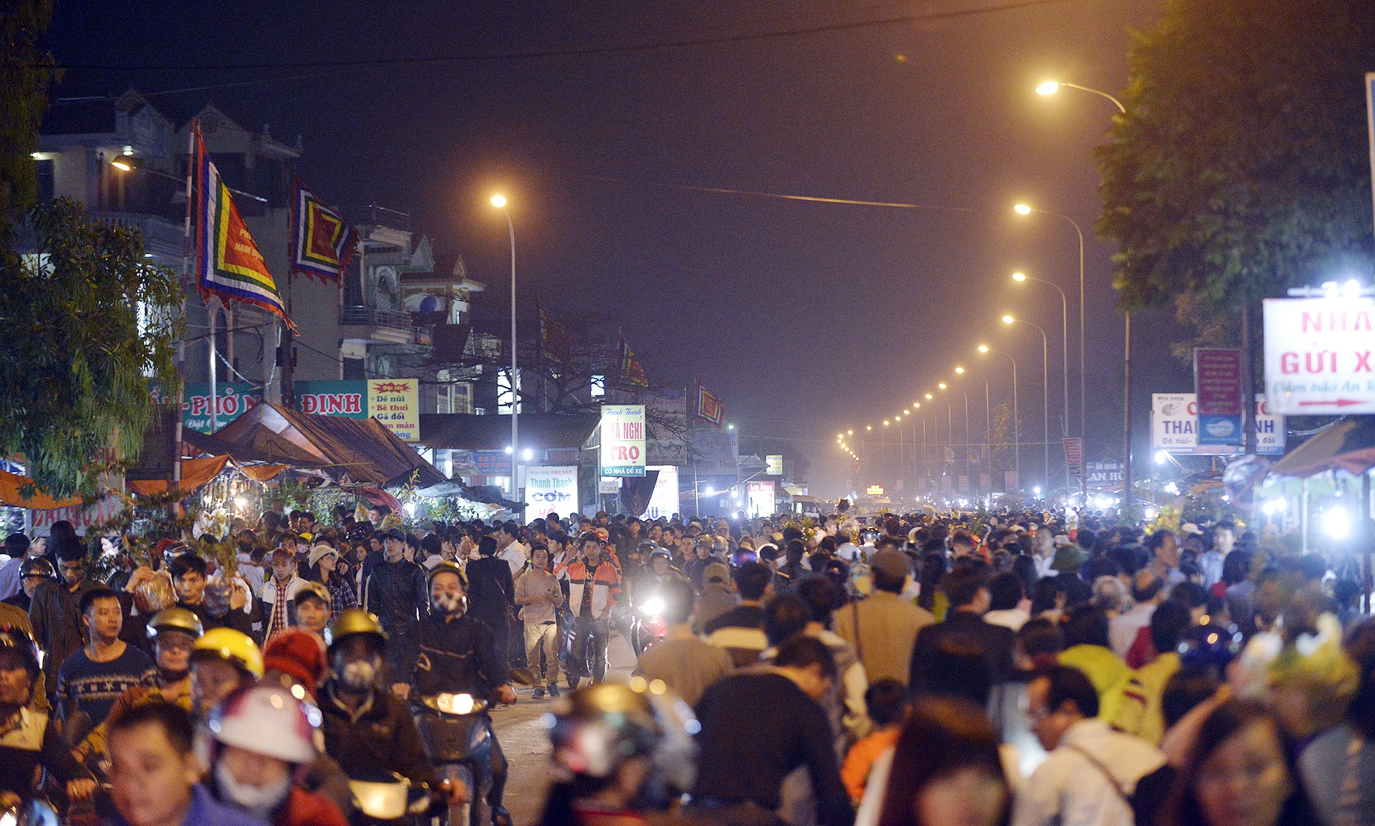 | Tối 14/2, hàng chục nghìn người đổ về dự lễ hội chợ Viềng, (Phủ Dầy, Vụ Bản, Nam Định) để mua hàng cầu may nhân dịp năm mới. |
