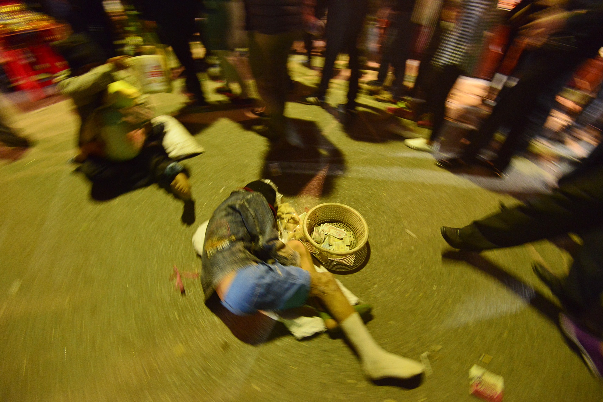 | Tuy nhiên, nhiều hình ảnh không đẹp đã xảy ra, trong đó có cảnh hàng chục người bò lê lết dưới lòng đường ăn xin. |