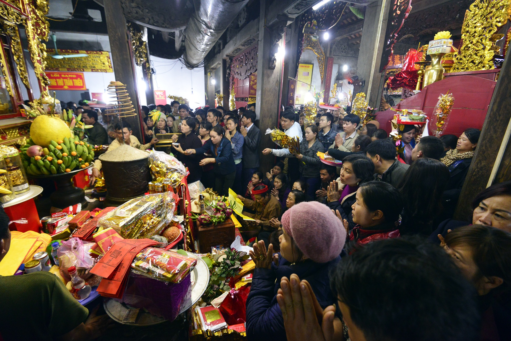 | Tại phủ chính, dòng người chen chúc lễ bái. |
