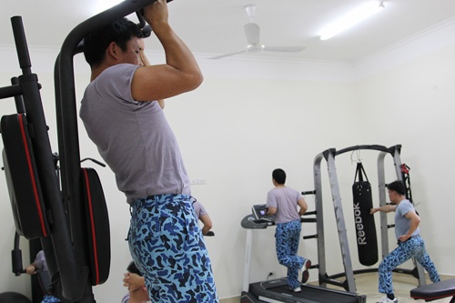 Sau một ngày học tập và huấn luyện, đúng 16h30, cán bộ thủy thủ tàu ngầm bắt đầu cho một buổi chiều tự rèn sức khỏe. Phòng tập đa năng được bố trí trong khu nhà ở của bộ đội. Mỗi phòng tập đều được trang bị những loại máy tập hiện đại nhất hiện nay.