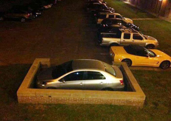 | Đại gia nên có ô riêng, nhưng em không hiểu anh "nghiêng" thế nào (để lấy xe ra). |