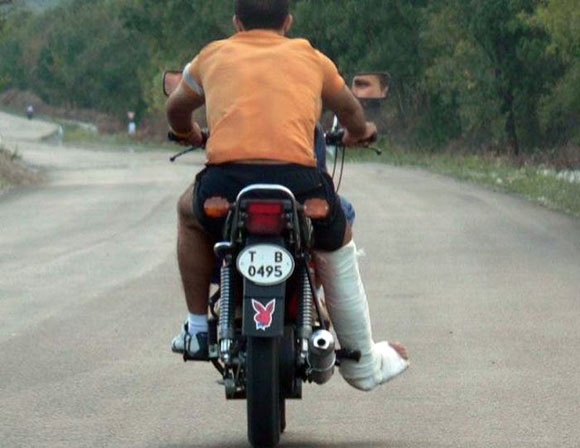 | Chân bó bột mà lái xe thì nguy hiểm quá. |