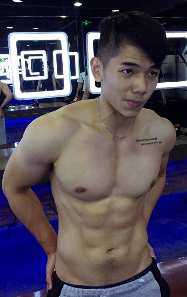 | Sau hai năm tập gym, Ngọc Huy sở hữu cơ bắp săn chắc, thân hình 6 múi. |