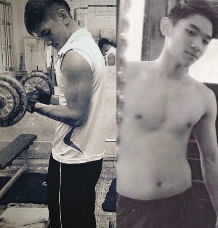 | Khi bị bạn gái chia tay vì thân hình ốm yếu, Ngọc Huy chăm chỉ đến phòng gym tập luyện. |