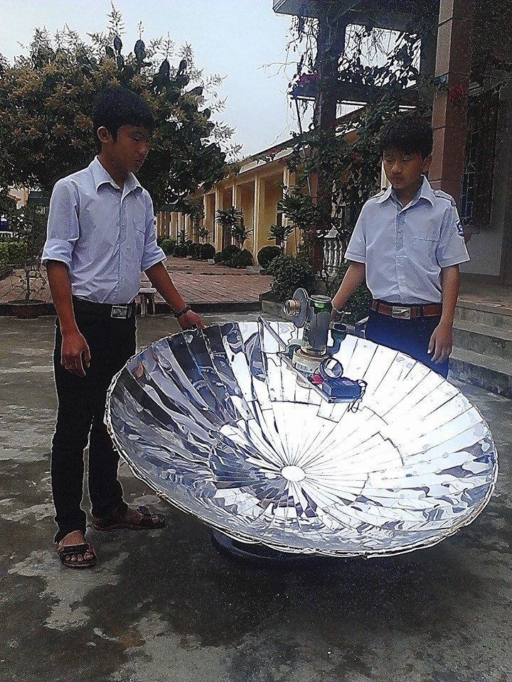 “Em tình cờ tìm thấy trên mạng thông tin về động cơ sử dụng dầu, rơm rạ để đốt. Sau khi tìm hiểu kỹ, em quyết định cải tiến nó, tận dụng năng lượng mặt trời để vừa tiết kiệm nhiên liệu, vừa không gây ô nhiễm môi trường”, Thuận kể lại.