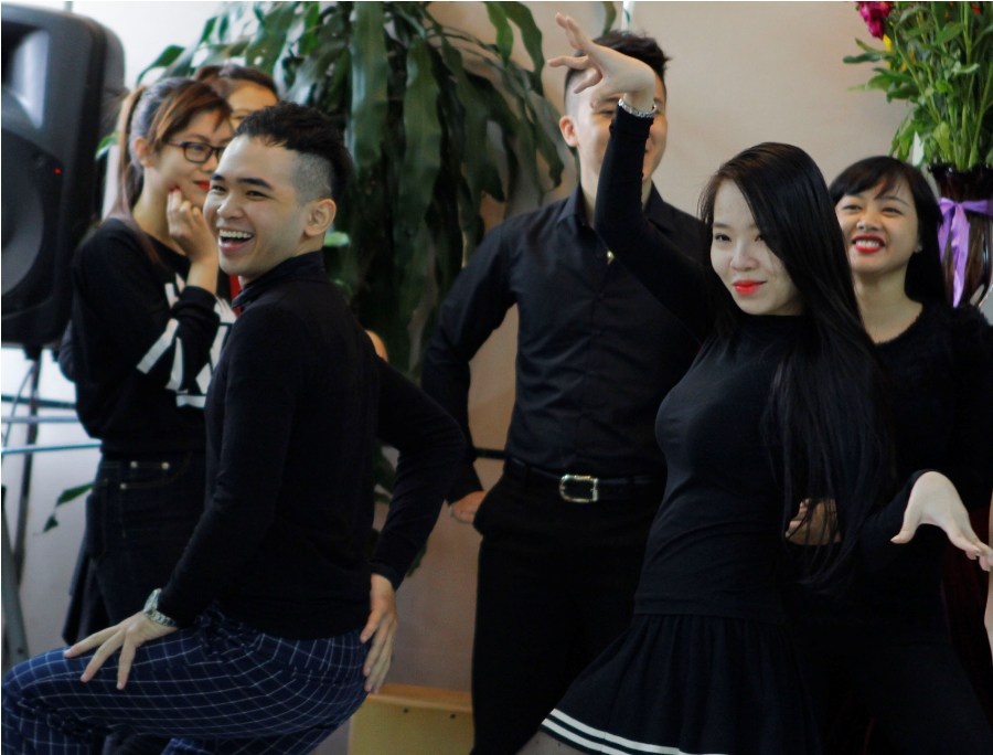 | Một nhón sinh viên khác gây ấn tượng với điệu nhảy "Hey mickey". |