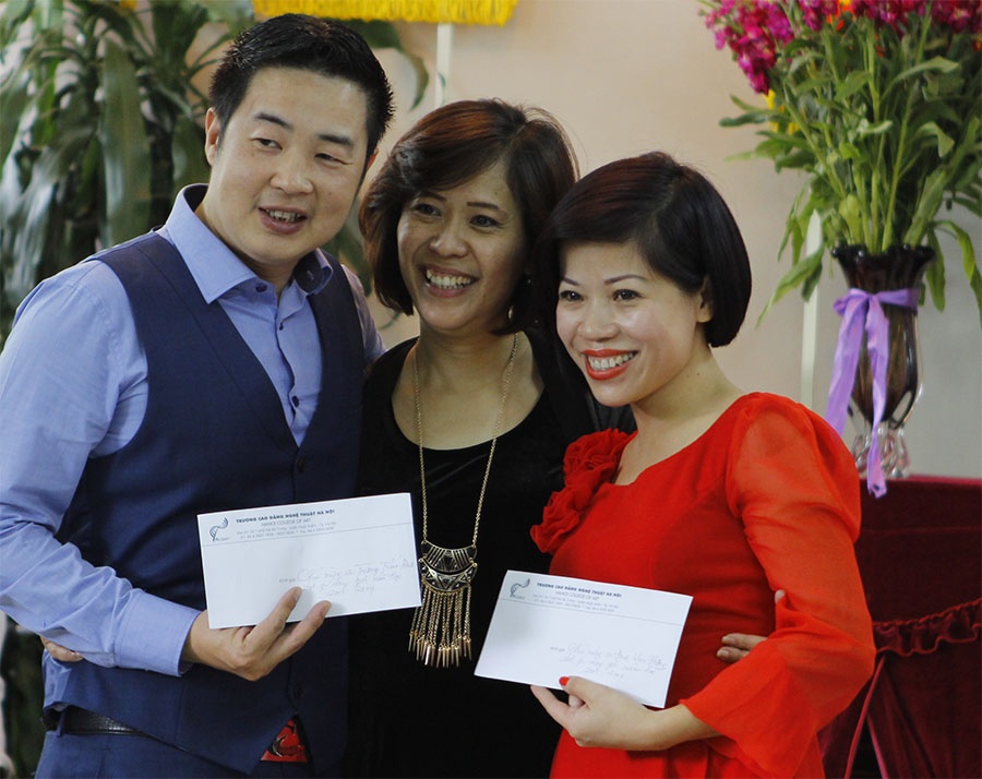 | Thầy cô trong khoa Thanh nhạc nhận phần thưởng giảng viên xuất sắc. |