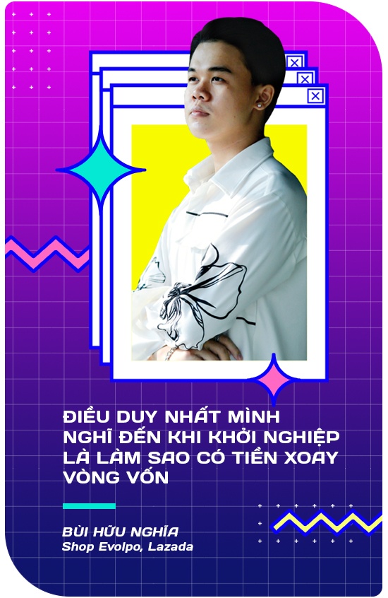Kinh doanh tự thân ở tuổi 19, số vốn 11 triệu đồng có thể khiêm tốn, nhưng đam mê và quyết tâm thì có thừa. Nghĩa tự tin mở gian hàng Evolpo trên Lazada. Cái tên Evolpo - kết hợp giữa Evolution (Sự phát triển) và Power (Sức mạnh) đã gửi gắm trọn vẹn ý chí và tham vọng ấy.