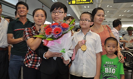 16h ngày 19/5, các học sinh Việt Nam tham dự kỳ thi Olympic Vật lý châu Á 2014 tại Singapore đã có mặt ở sân bay Nội Bài (Hà Nội).
