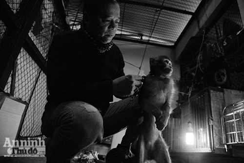 | Những ngày này, Hà Nội đang rất lạnh. Khu vực nuôi dưỡng huấn luyện khỉ của Rạp xiếc Trung ương luôn sáng ấm những bóng đèn sưởi. Nghệ sĩ Nguyễn Chí Quang (55 tuổi, 35 năm gắn bó với nghề xiếc khỉ) đang chăm sóc Ka - "người bạn diễn" đặc biệt của mình. |