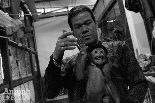 | "Có những con nuôi từ bé, cũng phải cho uống sữa như con mọn, mà sữa cũng phải là sữa ngon, sữa xịn hẳn hoi nhé. Đợt đi lưu diễn ở Thái Lan, khi tôi cho khỉ bú bình, người dân nước bạn rất ngạc nhiên. Khỉ là động vật cao cấp, rất thông minh, nó cũng có tình cảm. Không phải cứ roi vọt là huấn luyện được", nghệ sĩ Vũ Tuấn Đại (39 tuổi), đồng nghiệp của nghệ sĩ Nguyễn Chí Quang nhớ lại. |