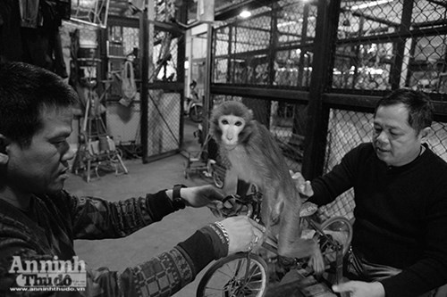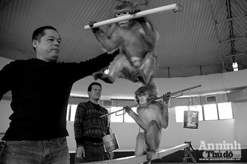 | Tuổi làm nghề trung bình của khỉ là 15 năm. Theo nghệ sĩ Nguyễn Chí Quang, để khỉ có thể thực hiện thuần thục từng động tác, người huấn luyện cần có sự kiên nhẫn, không nên nóng vội vì điều này sẽ rất dễ phản tác dụng. Hơn hết, người huấn luyện phải hiểu khỉ, linh hoạt, chủ động thời gian tập luyện. |