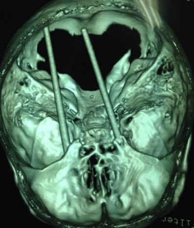| Đôi đũa đâm qua hốc mắt xuyên lên sàn não bệnh nhân. |
