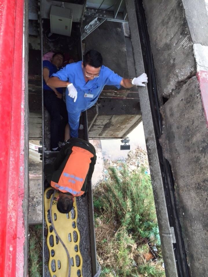 Sau ít phút, lực lượng chức năng đã đến giải cứu Mận an toàn. Tỉnh lại, chàng trai quê lúa cho biết, trước khi ngã xuống thanh dầm anh cảm thấy choáng váng.