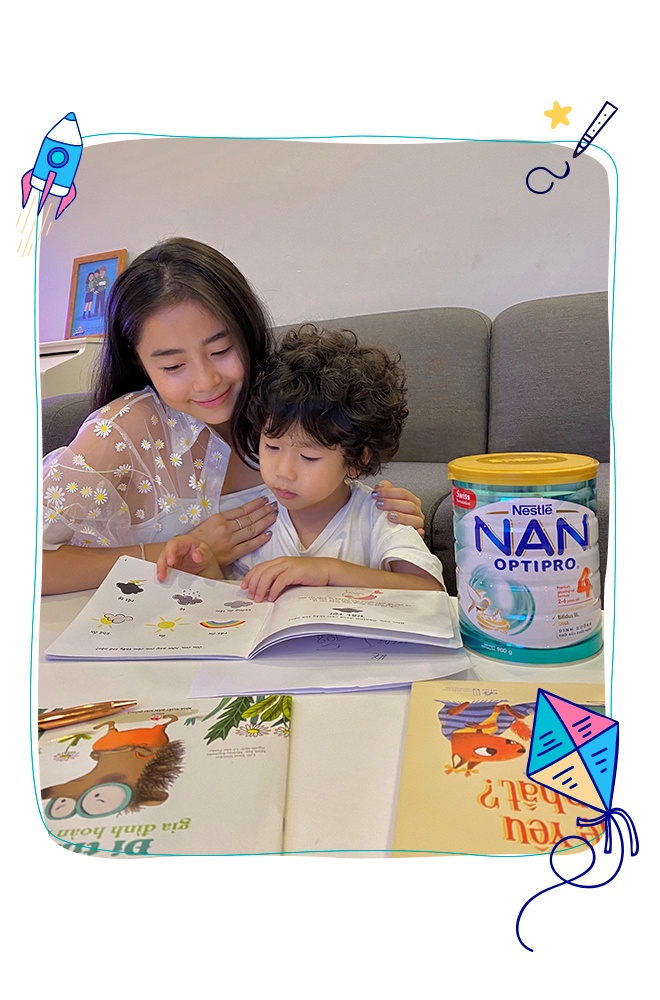 - Đậu có rất nhiều khoảnh khắc đáng yêu, mỗi ngày đều có những điều mới mẻ. Bản thân chúng tôi còn cảm thấy mọi thứ trôi qua thật nhanh. Nếu không dành thời gian mỗi ngày để chơi với con, ngắm con yêu cặm cụi nghiên cứu từng chữ cái, chắc hẳn tôi sẽ bỏ lỡ ngày con biết xếp những từ có nghĩa đầu tiên.