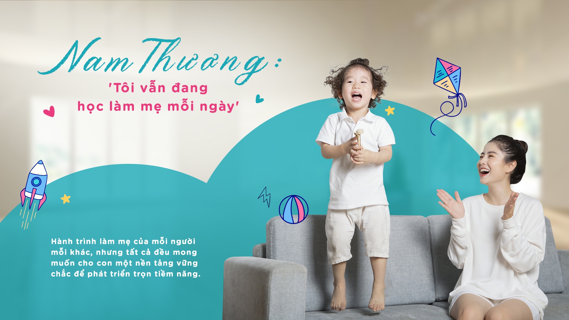 - Tôi không có một lời khuyên cụ thể, bởi bản thân vẫn đang phải học làm mẹ mỗi ngày. Tôi đã chia sẻ mình cảm thấy may mắn như thế nào khi có một em bé lém lỉnh, bộc lộ năng khiếu về ngôn ngữ từ sớm. Chúng tôi tạo điều kiện để con được tiếp xúc với những thứ bé cảm thấy thích thú ngay từ bây giờ.