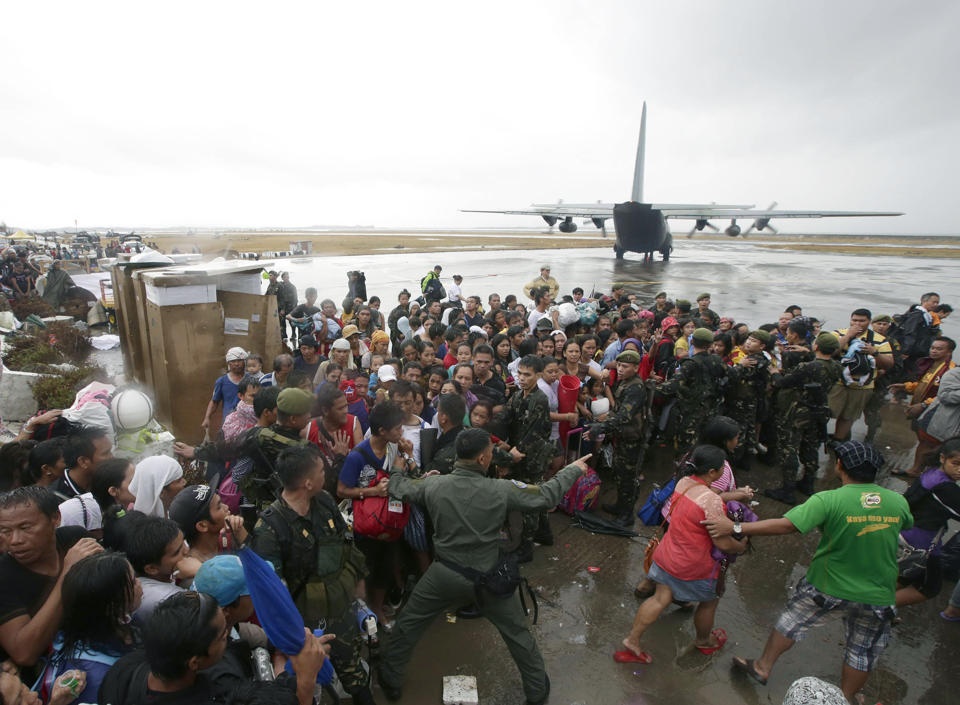 Khoảng 3.000 người dân Philippines tại thành phố Tacloban, nơi hứng chịu hậu quả khủng khiếp nhất của siêu bão Haiyan, qua đổ xô ra sân bay hôm qua để rời khỏi thành phố, song chỉ vài trăm người toại nguyện.