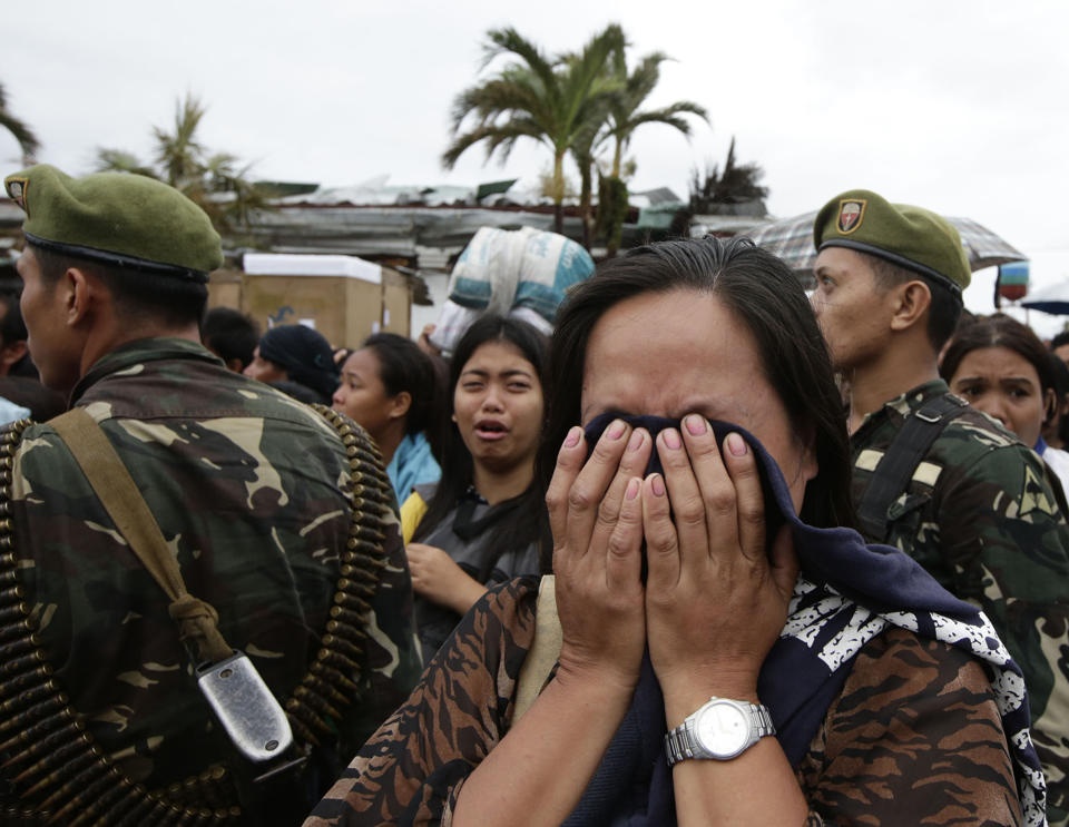 Người phụ nữ ôm mặt khóc vì không được lên máy bay. Nhu cầu viện trợ, giúp đỡ của 10 triệu nạn nhân của bão đang cấp thiết hơn bao giờ hết. Ảnh: AP.