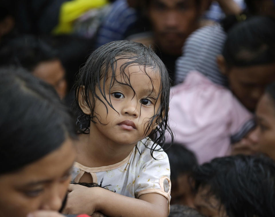 Mái tóc ướt và rối của một bé gái tại sân bay Tacloban. Ảnh: AP.