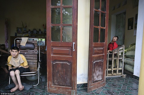 | Hai anh em trông một gia đình ở Hải Phòng đều bị co rút người và chậm phát triển. Ở độ tuổi 14, 15, thay vì đến trường học tập, các em lại ngồi ở nhà ngắm người đi đường qua lại. |