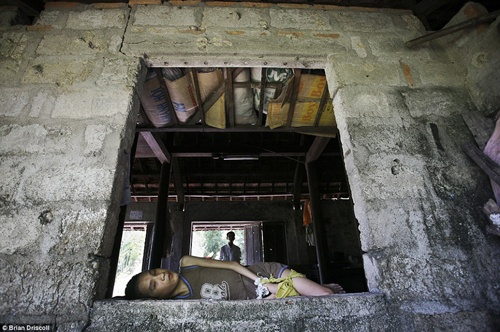 Người mẹ chăm lo cho đứa con ngây dại trong căn nhà không có đồ đạc gì đáng giá tại Quảng Ninh. |