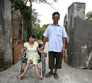 Những nạn nhân da cam thường đau yếu, quấy phá khi trở trời. |