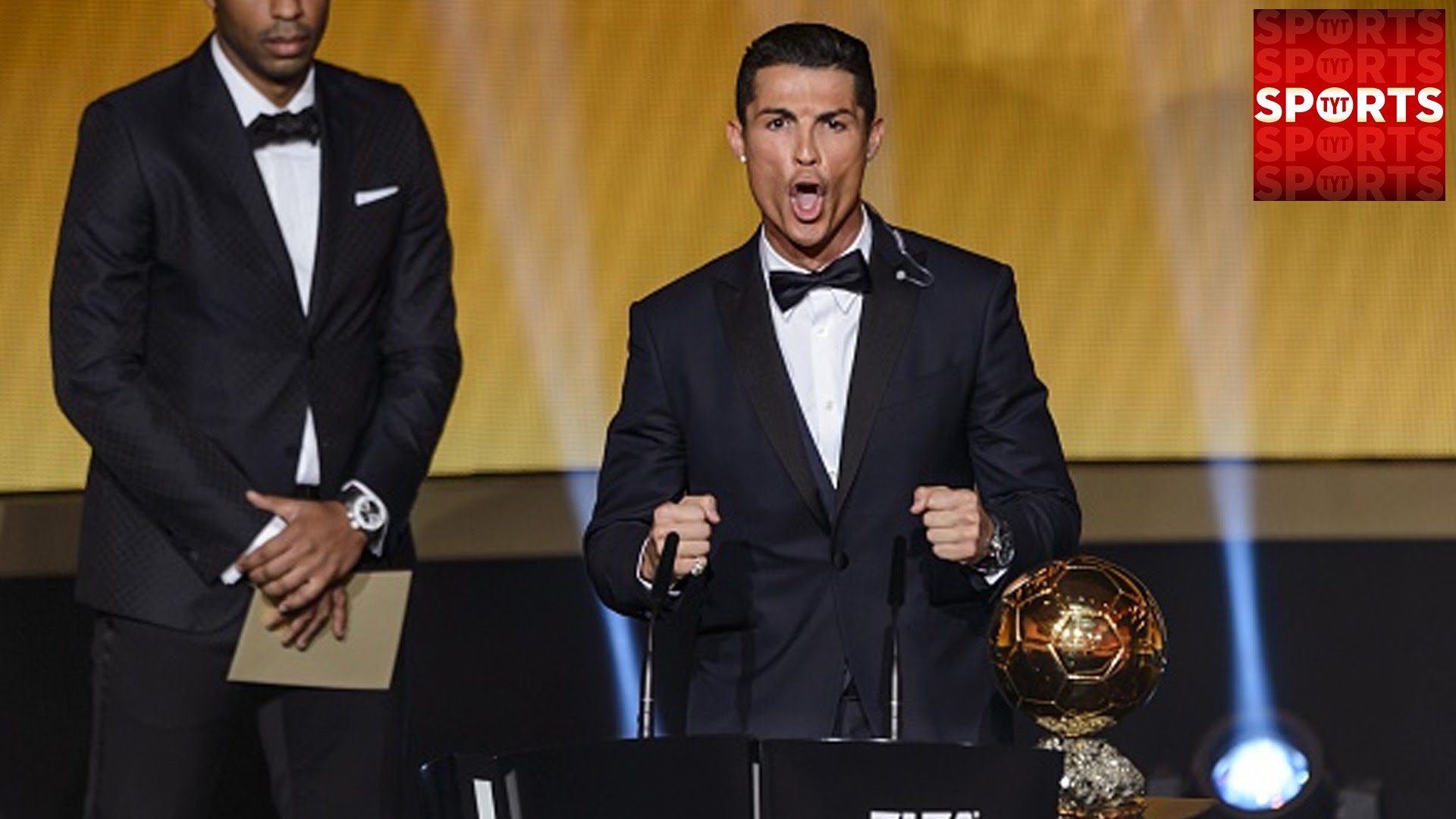 | Ronaldo ăn mừng Quả bóng vàng 2014. |