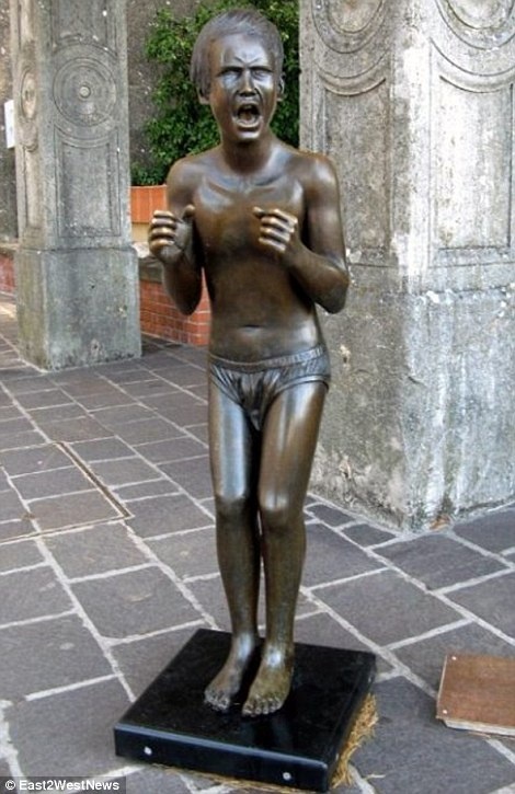 | Cậu bé Georgy Ilyin, một trong những biểu tượng của sự kinh hoàng trong vụ bắt cóc con tin ở Beslan. Người ta sử dụng hình ảnh cậu bé để tạc bức tượng để mọi người cảm nhận sự khủng khiếp mà những đứa trẻ phải trải qua trong cuộc khủng hoảng. |