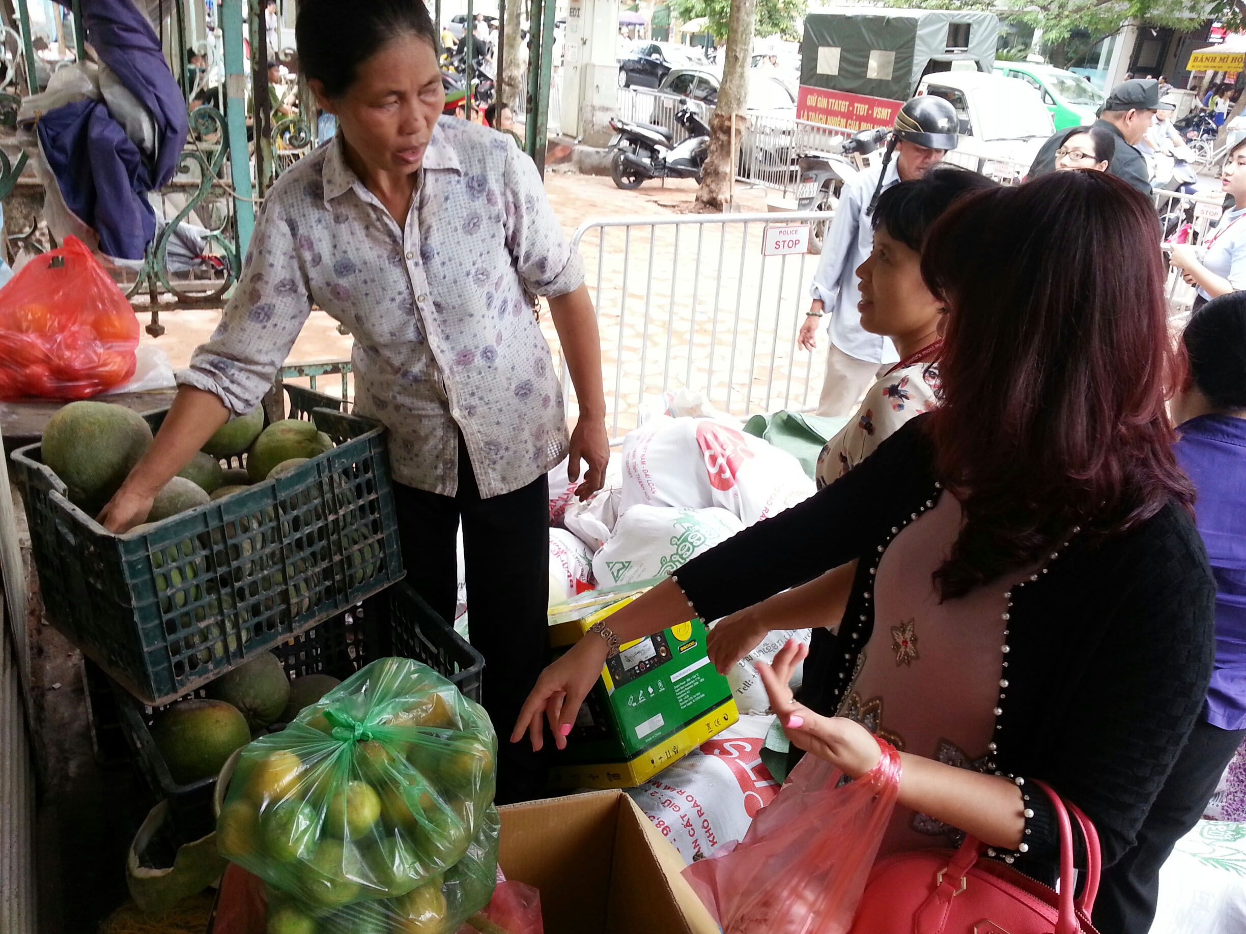 Khách quen thấy bà may mắn thoát nạn cứ liên tục tới hỏi thăm, mua những túi trái cây bám đầy bụi đất cho người phụ nữ trung tuổi.