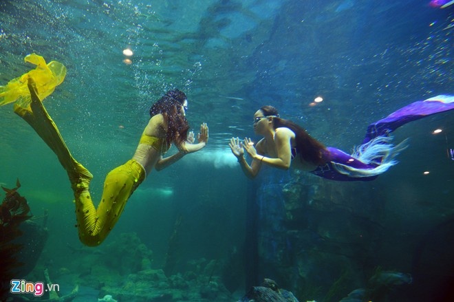 Hình ảnh những nàng tiên cá xinh đẹp bơi trong thủy cung lớn nhất tại thủ đô khiến không ít người ngỡ ngàng thích thú. Hầu hết những nàng tiên cá này đều là những cô gái trẻ hiện đang là sinh viên, hoặc vừa tốt nghiệp có chiều cao trên 1m6, bơi lội tốt và có nhu cầu làm thêm mỗi buổi.