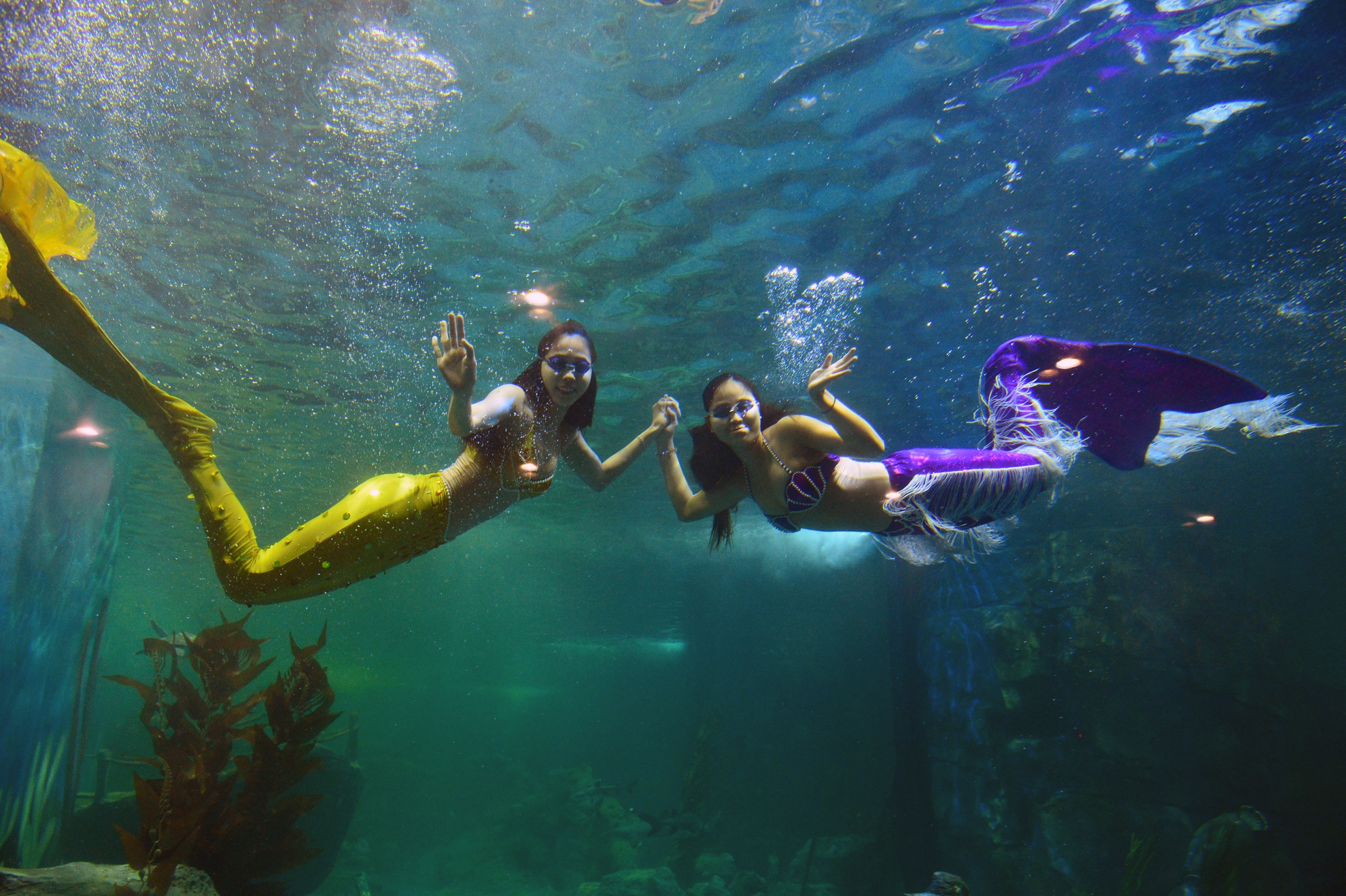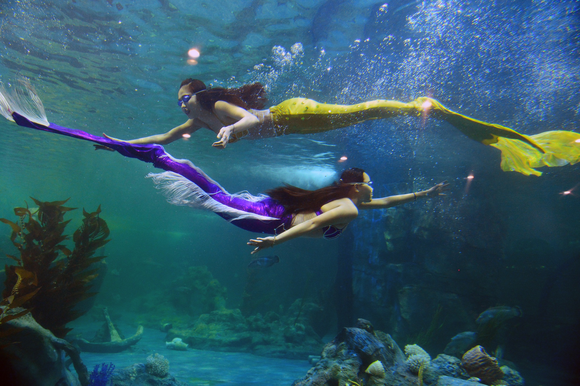 Mỗi buổi, hai nàng tiên cá chỉ biểu diễn khoảng 15 phút, có giờ cố định. Ngày thường vào lúc 11h và 15h30, thứ bảy, chủ nhật tăng cường thành 4 ca bơi.