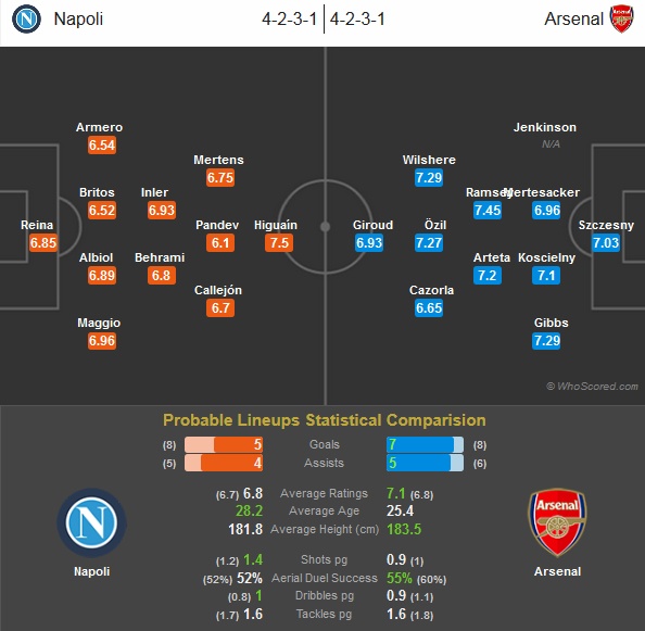 Về phía Napoli, để giành quyền đi tiếp, đội bóng do HLV Benitez dẫn dắt buộc phải giành chiến thắng với cách biệt lớn hơn 3 bàn. Đây là nhiệm vụ không dễ, bởi hàng thủ Arsenal thi đấu rất ổn định mùa này khi để thủng lưới ít nhất ở giải Ngoại hạng Anh (11 bàn thua).