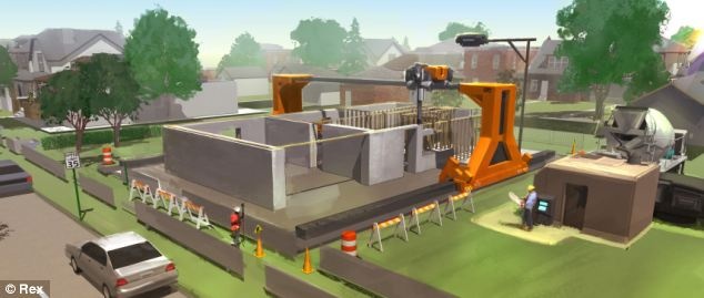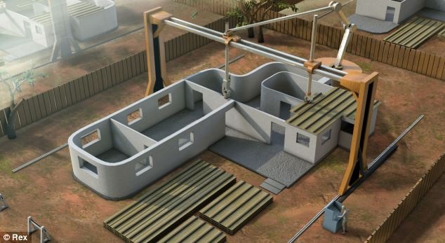 Hiện tại, NASA đang đầu tư kinh phí để trường đại học South California phát triển công nghệ in 3D mang tên Đường viền Phác thảo. Các nhà nghiên cứu cho biết, Đường viền Phác thảo cho phép hệ thống máy móc do máy tính điều khiển xây nhà trong vòng 24 giờ. Ảnh: Rex.