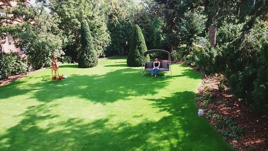 Nathan Lee hào hứng tạo dáng trong vườn nhà Thu Minh.