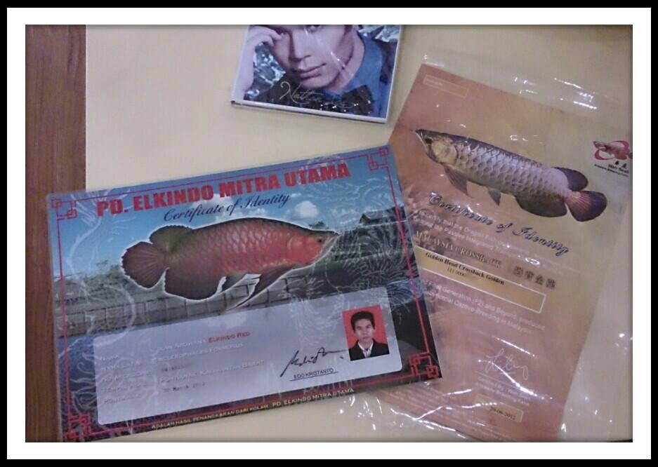 | Nam ca sĩ khoe bằng chứng mình mua cá rồng. |