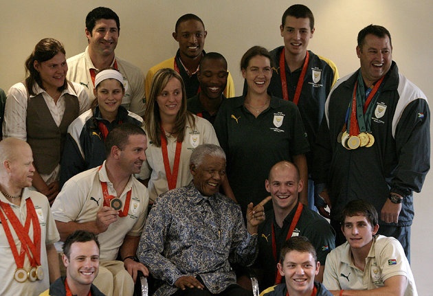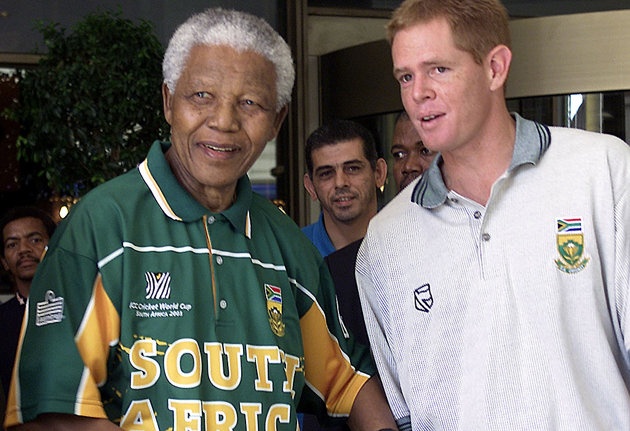 | Năm 2002: Cựu tổng thống Nam Phi chụp ảnh cùng Shaun Pollock - đội trưởng đội truyển cricket Nam Phi |
