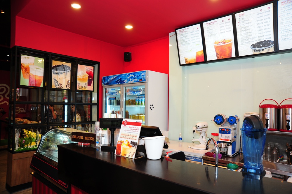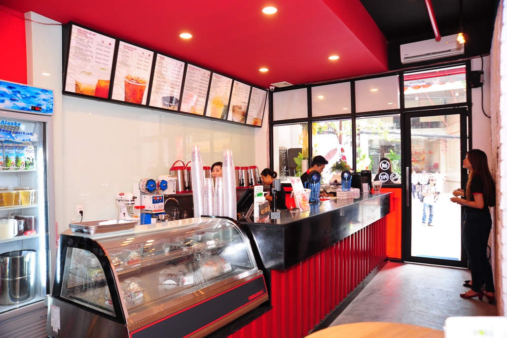 Thức uống được pha theo phong cách ngon lạ từ 4 loại trà hảo hạng như Oolong, trà xanh, trà đen, trà Alisan, kèm các loại topping như trái cây tươi, đậu, bánh flan…