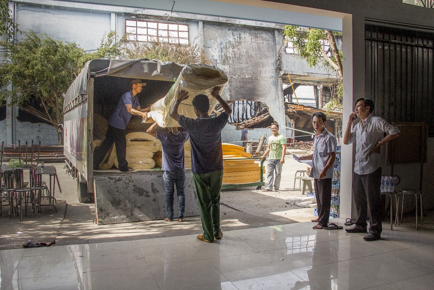 Một số hình ảnh hoạt động sản xuất giao hàng tại nhà máy nệm Vạn Thành sau sự cố hỏa hoạn do công ty cung cấp.
