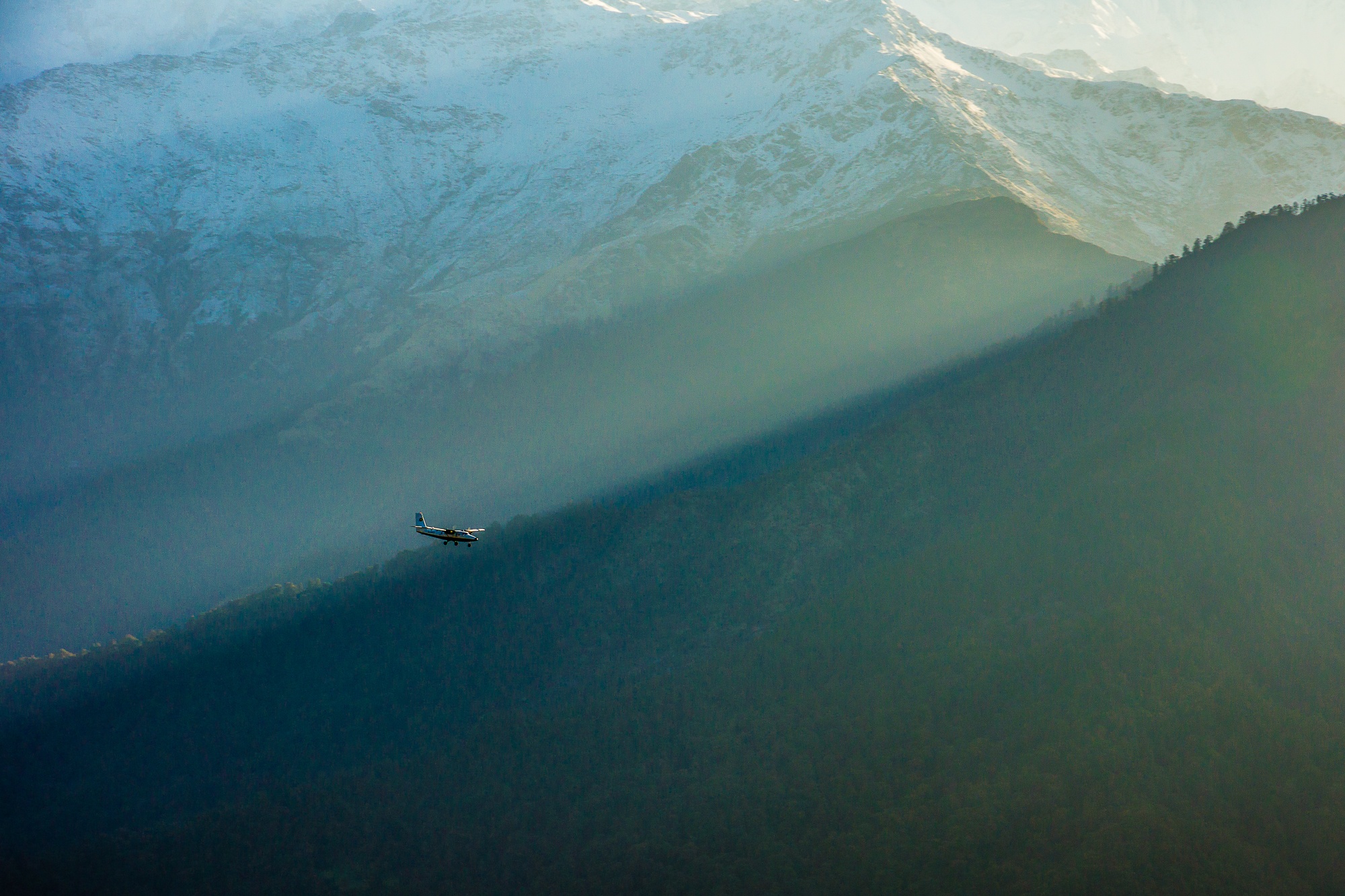 Địa lý Nepal có 3 vùng gồm đồng bằng, đối và núi cao. Trong đó, phía bắc tiếp giáp với nhiều điểm cao nhất thế giới. Đỉnh Everest (Sagarmatha trong tiếng Nepal) cao 8.850 mét, giáp với biên giới Trung Quốc là một trong những điểm nổi tiếng nhất. Trên máy bay từ phía bắc tới, khách có thể nhìn thấy đỉnh núi. Ngoài ra, các khu vực khác của Nepal cũng là điểm yêu thích của người muốn chinh phụ Himalaya. Ảnh được chụp trên chuyến bay từ Bhutan tới Kathmandu. Tác giả: Nguyễn Thanh Hải.