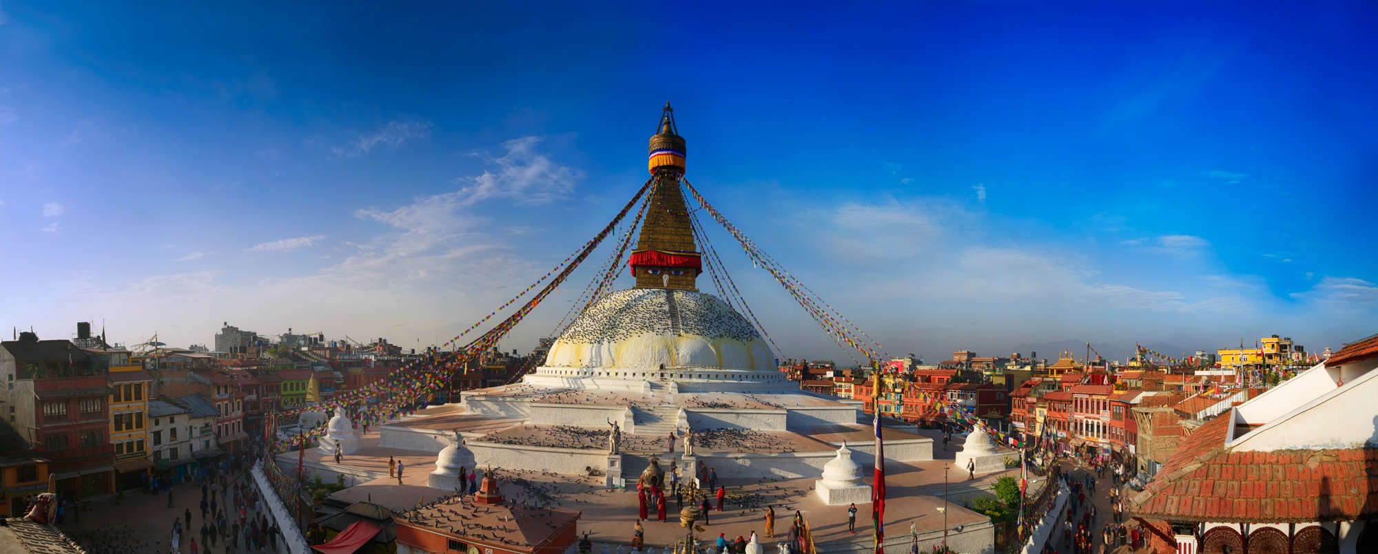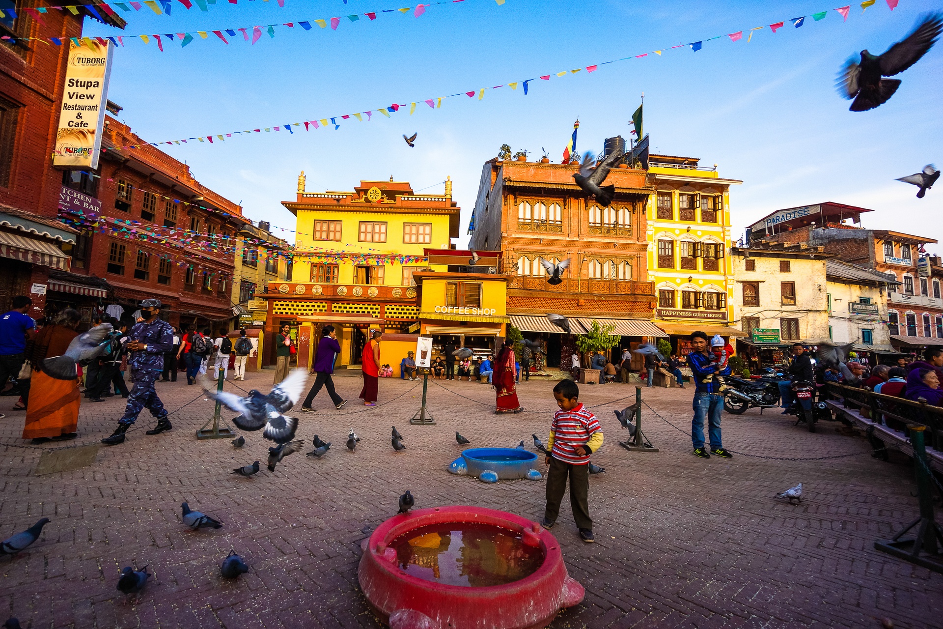 | Đàn chim bồ câu dưới chân tháp Boudhanath Stupa. Tác giả: Phạm An Dương. |