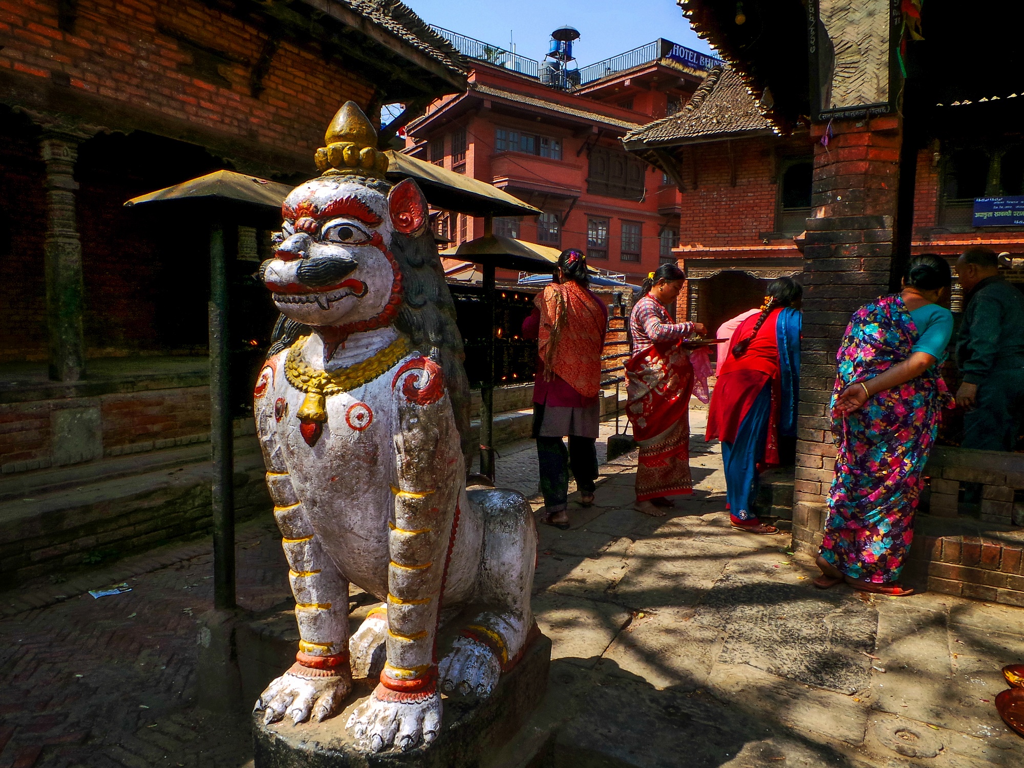 Quảng trường Durbar ở Kathmandu, một trong những địa điểm thu hút du khách nhất Nepal. Từ cổng vào, khách tham qua có thể xem tượng thần khỉ Hanuman. Tại đây có hơn 40 đền đài, xây dựng từ thế kỷ 12 tới 18, là nơi các vị vua của vương quốc Nepal đăng quang và tại vị cho tới thế kỷ 20. Đây là một trong những điểm chịu ảnh hưởng nặng nề sau trận động đất hồi tháng 4. Bức ảnh này chụp năm 2010. Tác giả: Trần Nguyên Hà.