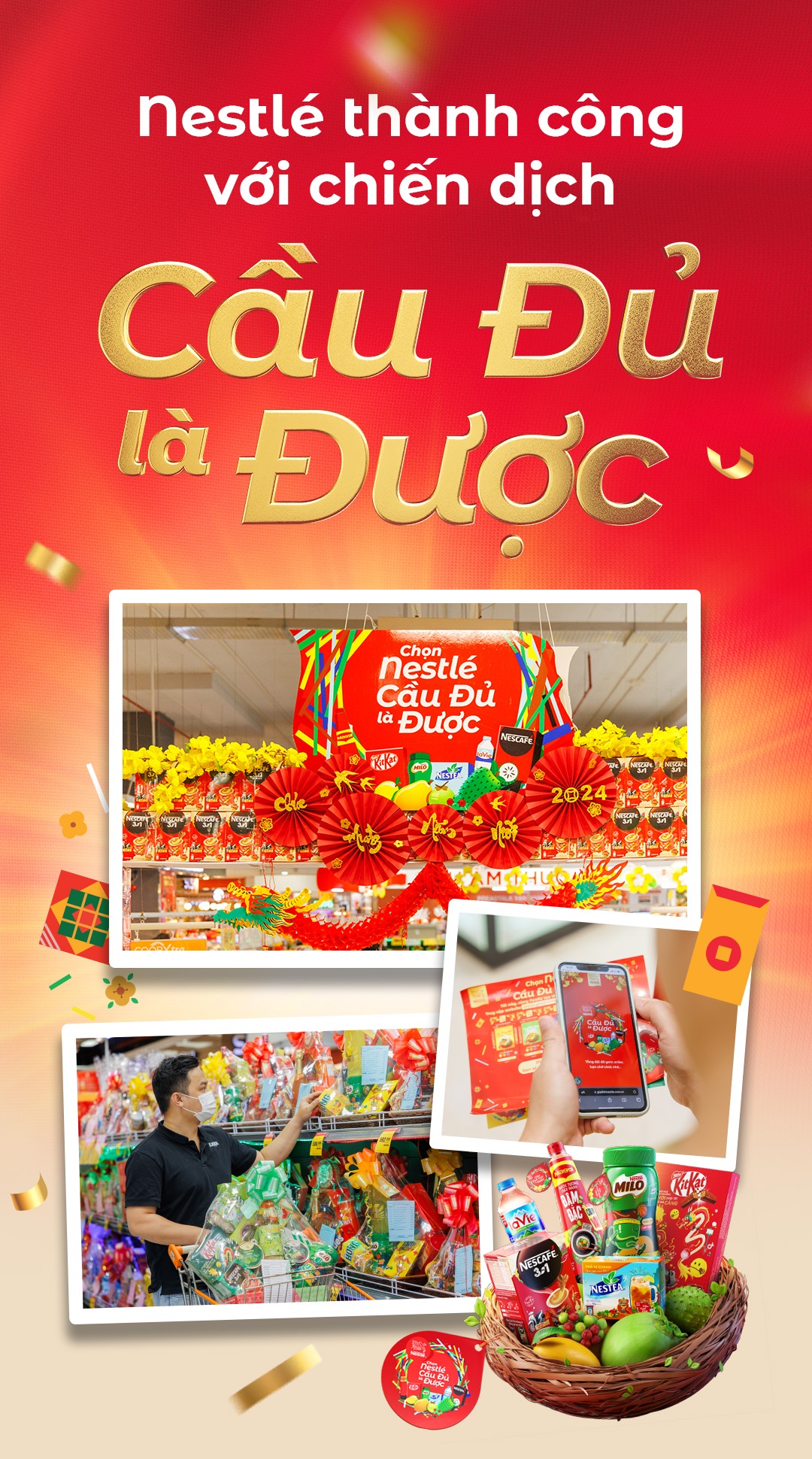 Hướng tới cái Tết “đủ xài” nhưng dư dả yêu thương, đưa mọi người quay về giá trị cốt lõi của ngày lễ cổ truyền, Nestlé Việt Nam triển khai chiến dịch “Cầu đủ là được” lấy cảm hứng từ nét đẹp văn hóa cầu chúc của dân tộc. Xuất phát từ ý nghĩa nguyên bản trong truyền thống chúc Tết của người Việt, thông điệp “Cầu đủ là được” ngụ ý mọi lời chúc sẽ thành hiện thực khi ta biết cầu đủ và quyết tâm thực hiện. Chiến dịch nhận được sự hưởng ứng của hàng triệu người tiêu dùng qua chuỗi hoạt động như tạo thiệp chúc online, tham gia thử thách trên mạng xã hội, tham quan gian hàng Tết…