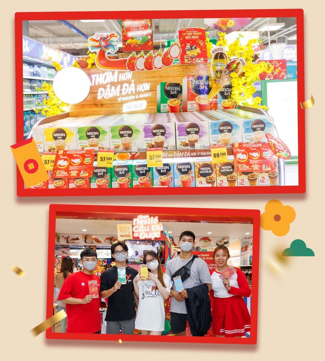 Cộng hưởng sức lan tỏa trên nền tảng truyền thông, người tiêu dùng hào hứng ghé gian hàng Tết của Nestlé tại 110 siêu thị, cửa hàng như Big C, Co.opmart… và hơn 350 chợ truyền thống trên toàn quốc để đổi quà và thử sức với nhiều hoạt động, trò chơi tương tác. Thông qua chuỗi hoạt động chiếm sóng nền tảng online - offline, Nestlé Việt Nam mang mùa Tết phong phú và thiết thực đến mọi nhà, người tiêu dùng mọi độ tuổi.