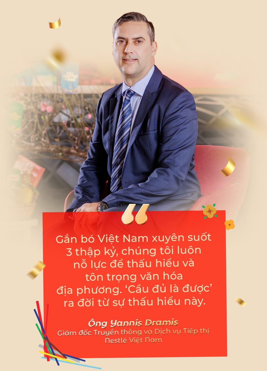 “Gắn bó Việt Nam xuyên suốt 3 thập kỷ, chúng tôi luôn nỗ lực để thấu hiểu và tôn trọng văn hóa địa phương. Với người Việt, lời cầu chúc quan trọng nhất ở tấm lòng. Theo đó, thông điệp Cầu đủ là được đủ chân thành, không quá xa vời. Trên hết, thông điệp chạm đúng tâm tư nhiều người, sau một năm nhiều trăn trở”, ông Yannis Dramis khẳng định.