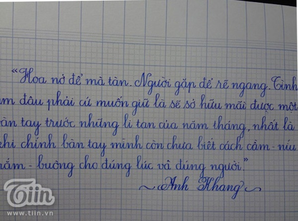 | Nét chữ đẹp đến mê mẩn của Ngân. |