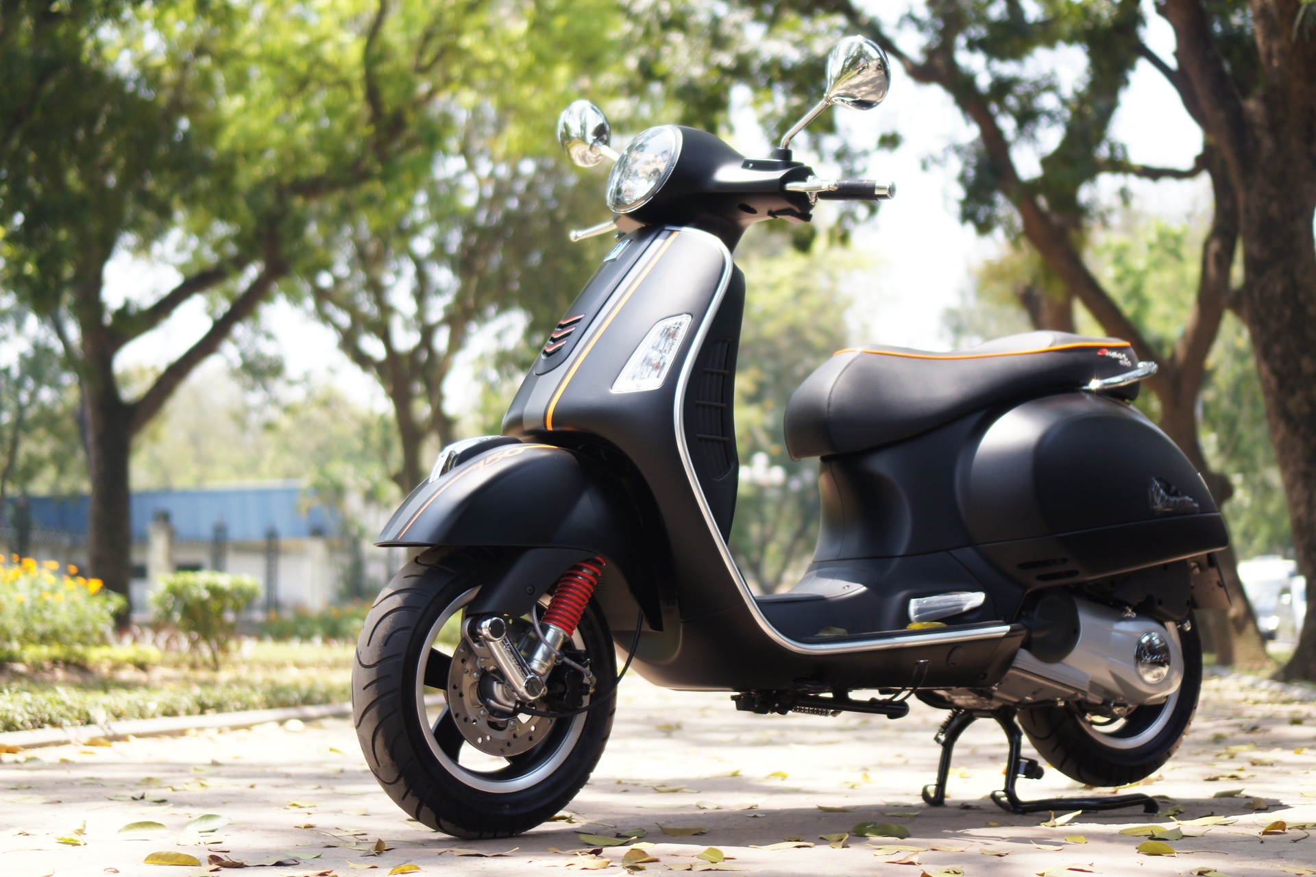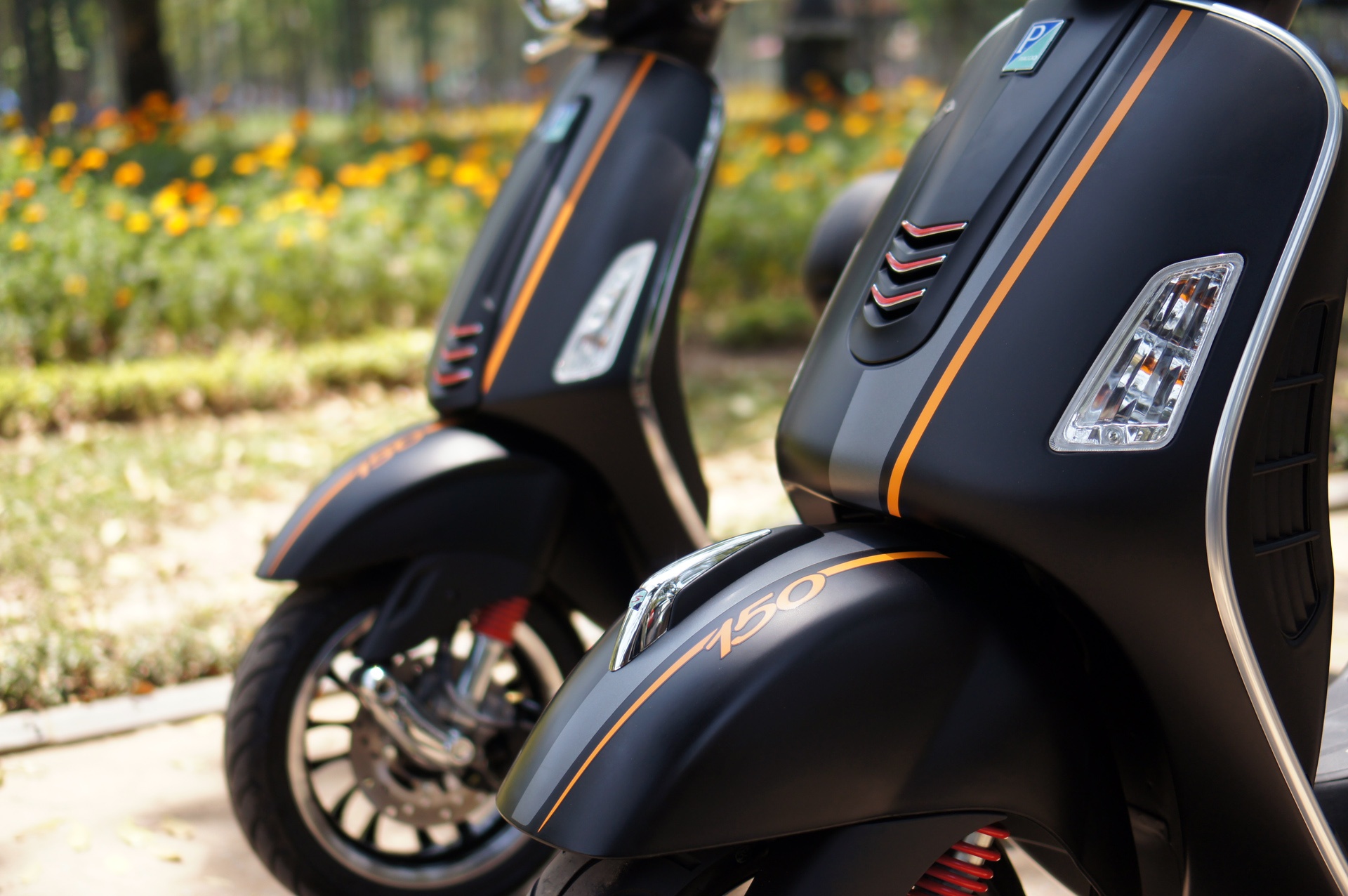 Vespa Sprint 150 và GTS Super 150 phiên bản màu sơn đen mờ mới ra mắt có điểm nhấn ở những chi tiết màu cam và đỏ, làm tăng tính thể thao.